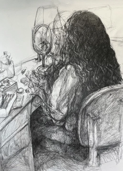 Hayden Johnson, The Routine, 2024. Graphite, 48” x 60”