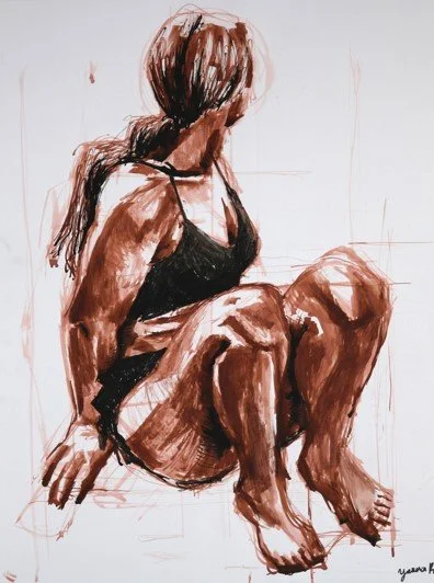 Yasmin Ratzlaff, Don’t Look, 2026. Sepia and India ink on Bristol paper, 24” x 19”